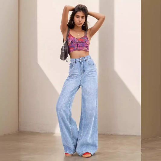 Retro High Waist Loose Wide Leg Pants Straight Women