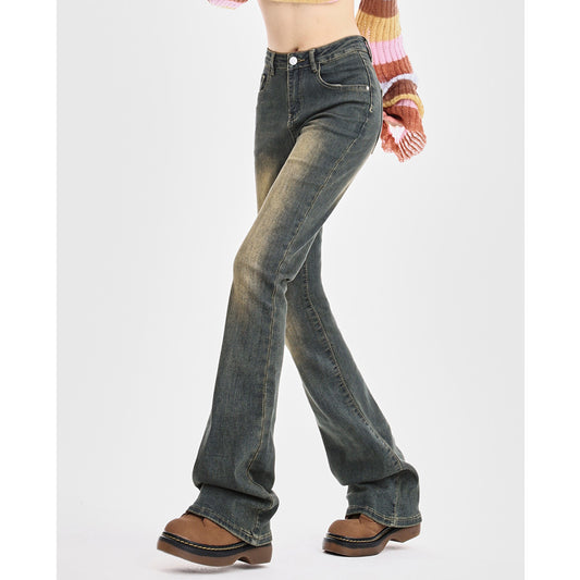 High Waist All-matching Twist Elastic Denim Bell-bottom Pants
