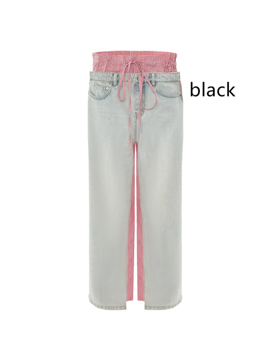 Washed Tie-dye Pocket Stitching High Waist Straight Jeans