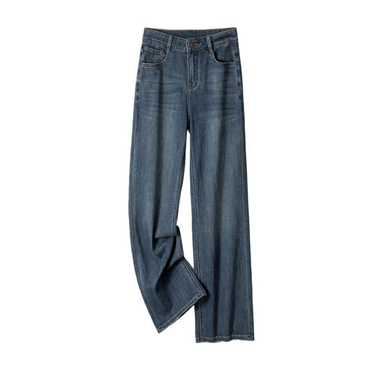 High Waist Wash Drooping Straight Pants Women's Simple Design